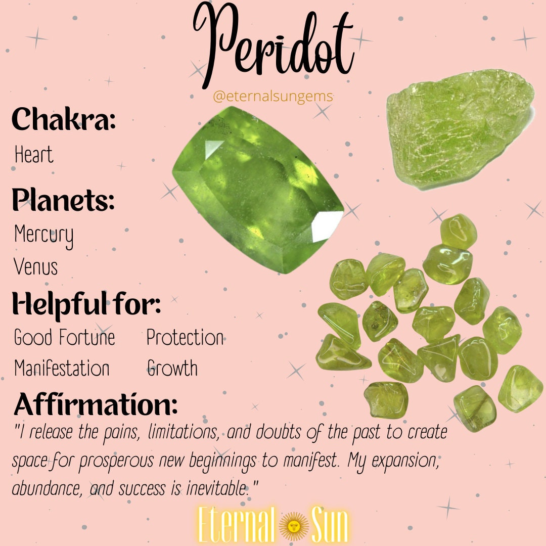 Peridot 💚 is associated with the heart chakra and is good for protection, healing of the mind, body & spirit and manifesting physical and spiritual abundance.