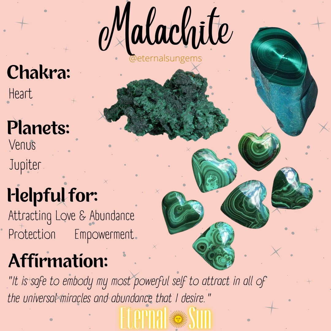 Malachite ๐ is a very protective stone associated with the heart chakra that absorbs negative energies from around you. It is a stone that helps to heal your heart & aids in positive transformation.